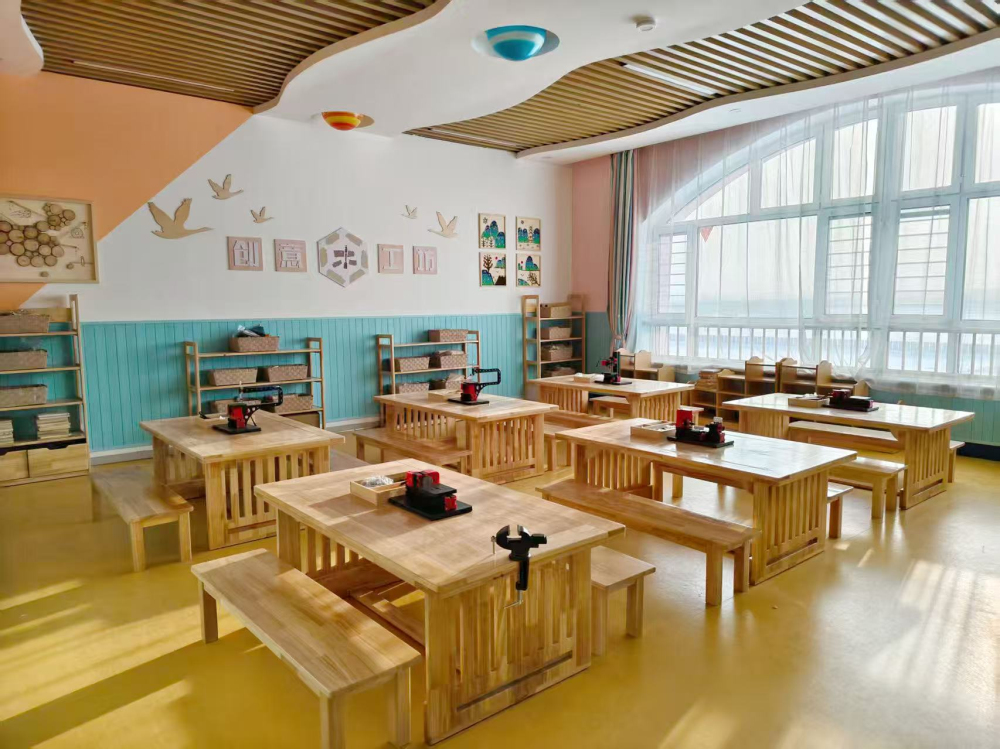 大眼睛创意木工坊,专为3-6岁幼儿设计,全系列工具耗材通过幼儿安全认证,配套一系列实木专用家具。提供分龄课程+一站式安装培训服务,让孩子在安全、趣味的木艺创作中,培养耐心、创造力与工匠精神。目前已落地全国1200+幼儿园。